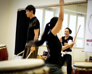 In Kooperation mit dem Mugen Dojo Mülheim bieten wir das traditionelle japanische Trommeln (Wadaiko) an.